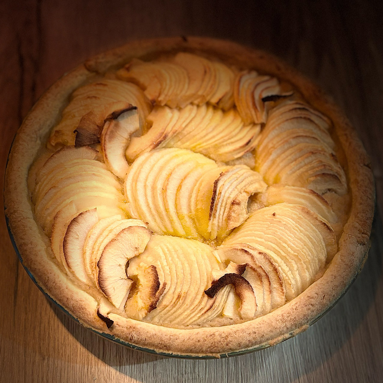 Une tarte aux pommes maison dorée et fondante, préparée avec des pommes locales du Jura et une pâte sablée croustillante. Un classique indémodable signé de votre traiteur à Saint-Lothain.